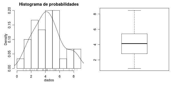 ## histograma de probabilidades, histograma suavizado ("density plot") e marcação de dados ("rug")
